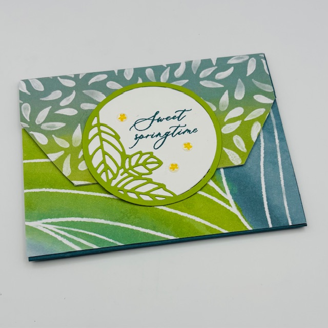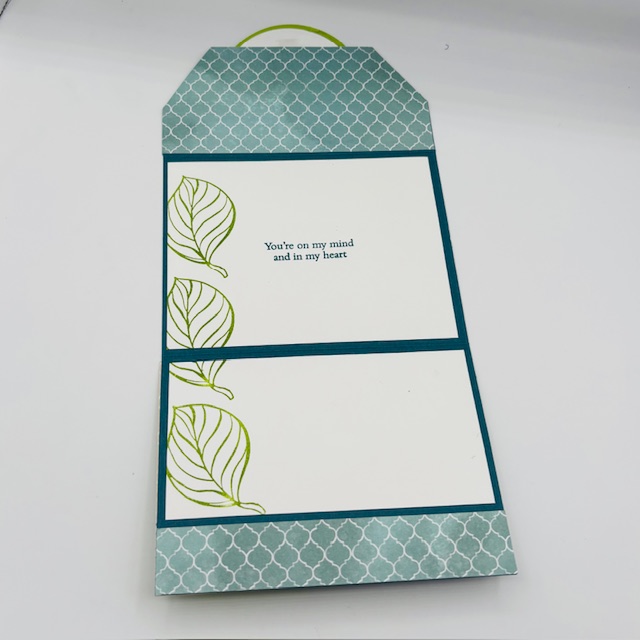 I created a pull out card and stamped the inside verse. You could also enclose a gift card into this corner pocket. This fun fold card is easy to create and packs a surprise with the fun fold.