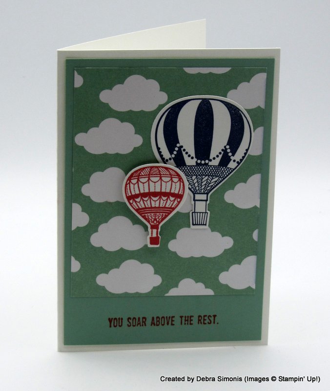This card was created for a friend as a thank you card. The hot air balloons are perfect for men, women and children. And I think this card could be used for most any occasion; thank you, birthday, congratulations, thinking of you, etc.