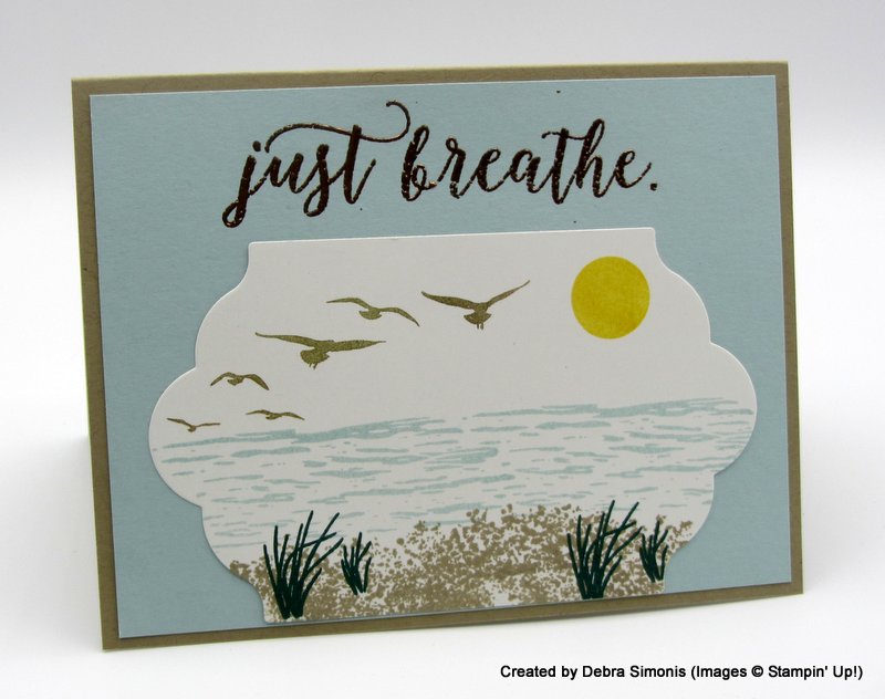 My advice to her is to “just breathe” like the new Colorful Seasons stamp set says! The images from the High Tide stamp set were used to create the ocean scenery that is near and dear to her heart. I’d be lying if I didn’t wish she were closer to me here in Central Wisconsin but the proximity to the ocean in San Diego captured her heart years ago.