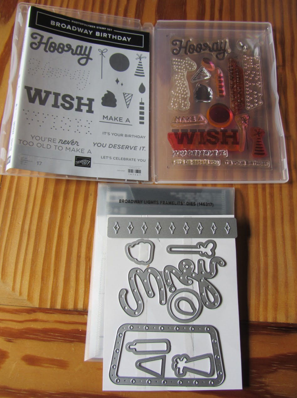 sale pending – Broadway Birthday stamp set w/Broadway Lights Dies $25.00