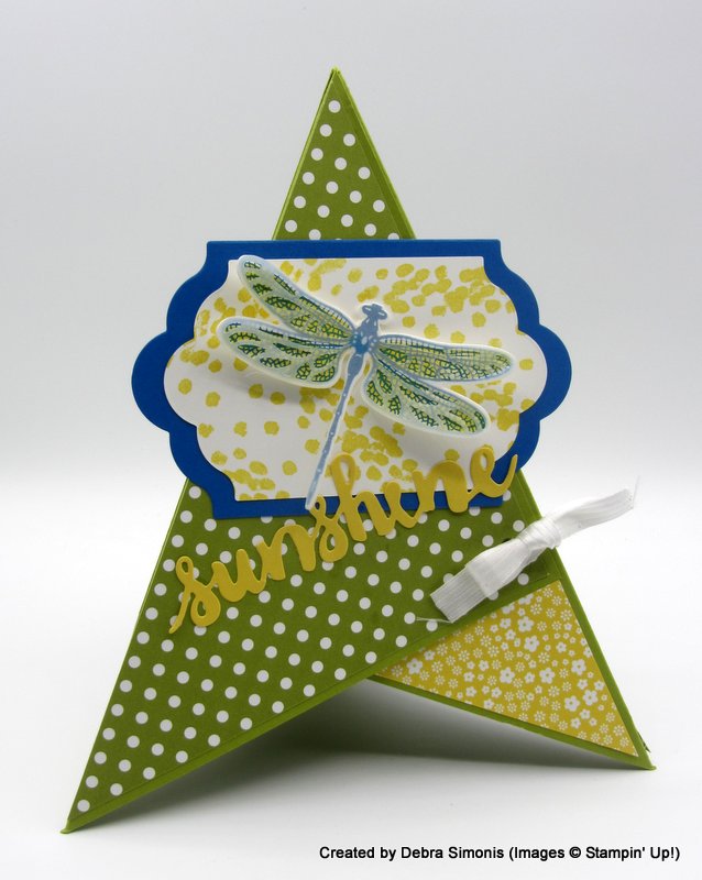 Stamping Tip: There is a vellum overlay on top of the stamped dragonfly image. It lends dimension and extra interest to the card.