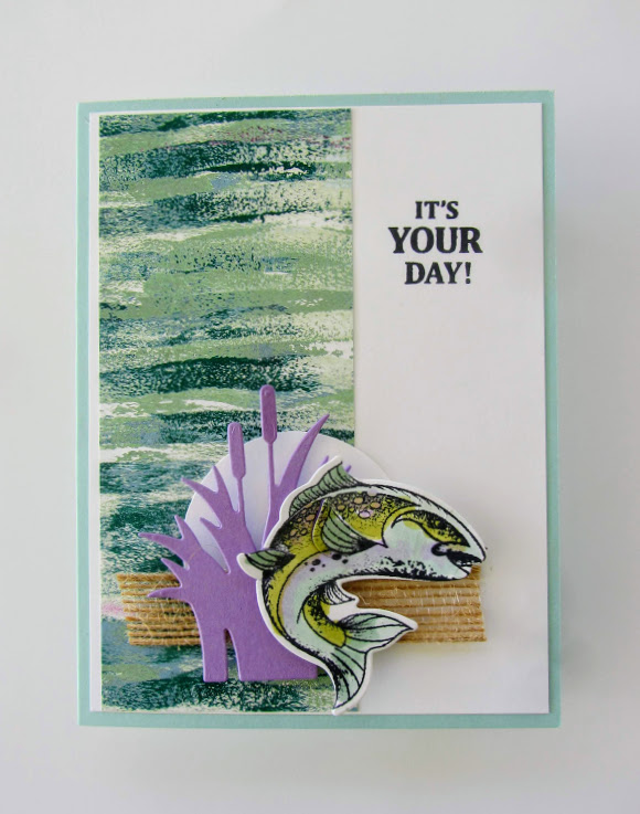 Stampin Up Best Catch stamp set Catch of the Day Thinlits masculine card fishing theme card – Debra Simonis Stampinup