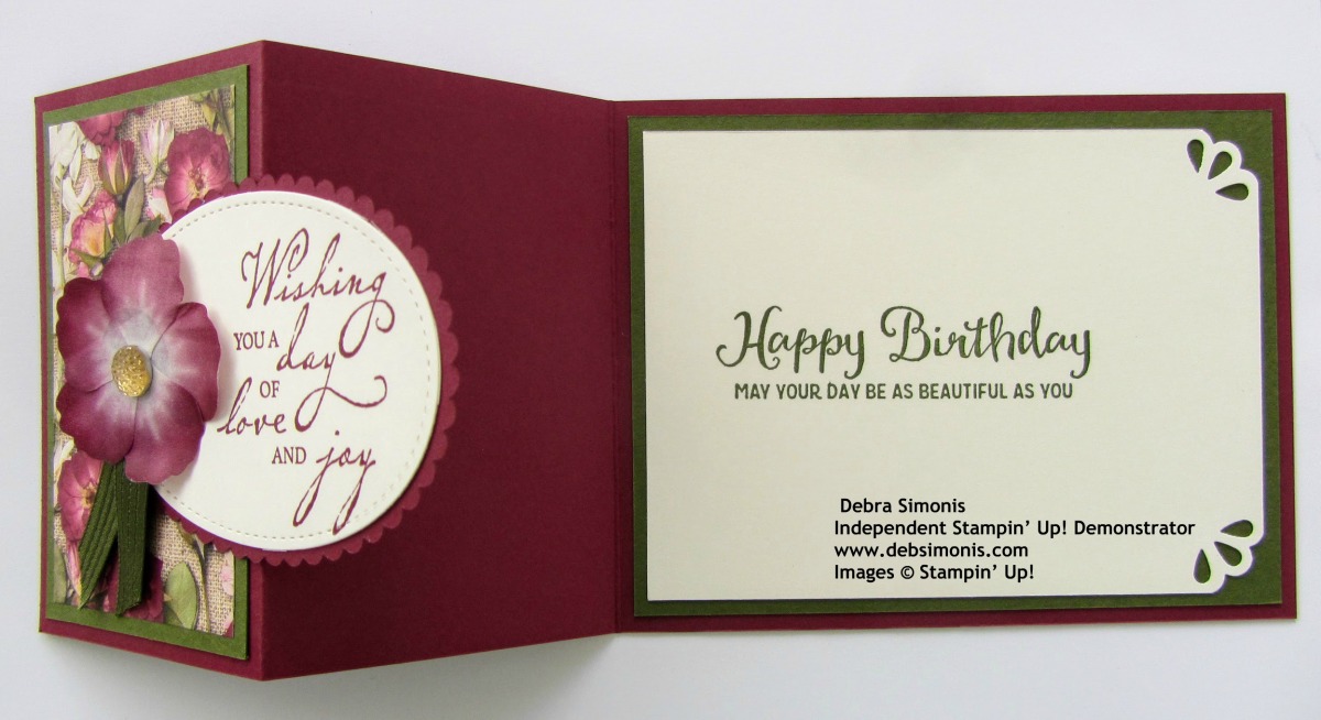 Stampin Up Beautiful Day stamp set Woven Heirlooms stamp set Layering Ovals Dies Stitched Shapes Dies Pressed Petals Specialty Washi Tape birthday card – Debra Simonis Stampinup
