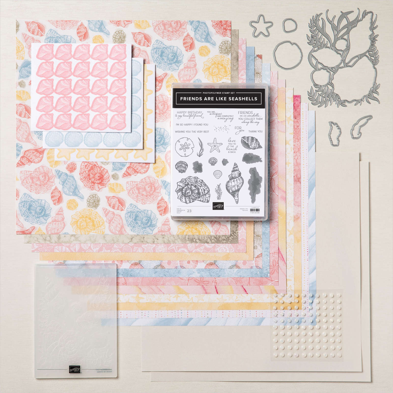 Accessories – Seashell Dies, Seashells Embossing Folder, Stampin’ Dimensionals, Stampin’ Seal