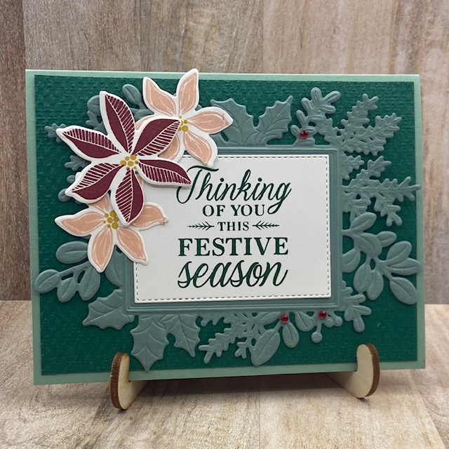 Stampin Up Merriest Moments Merriest Frames Dies Merriest Frames Hybrid Embossing Folder Tasteful Textile Embossing Folder Christmas card – Debra Simonis Stampinup