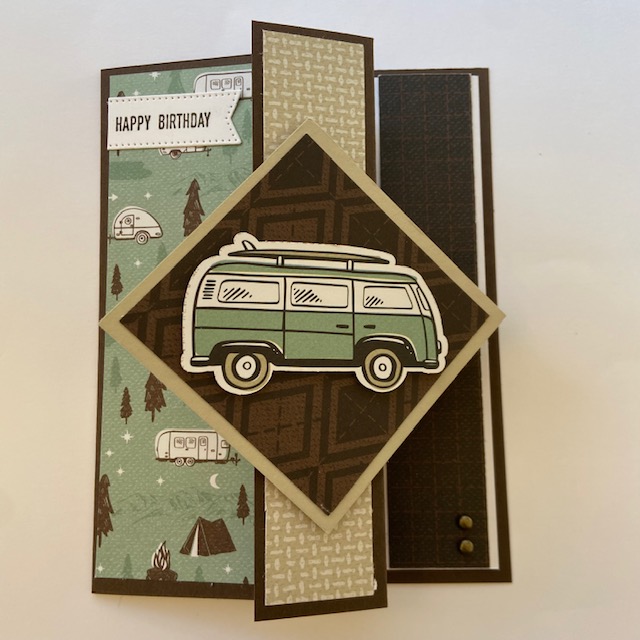 Stampin Up He’s the Man Designer Series Paper masculine birthday card van camping fun fold card – Debra Simonis Stampinup