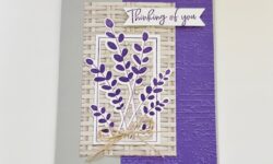 I created this card over a month ago but haven’t been active online due to ongoing health issues. I’ll be having surgery in 2 weeks and hope to be back in full force shortly after! In the meantime, I ask you to help support my business with your orders. I value each and every one; both large & small! Stamp Set – Friendly FoilageInk – Gorgeous GrapeCardstock – Gorgeous Grape, Gray Granite, Basic White, Woven…