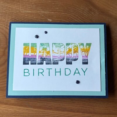 Today is my grandson’s birthday. I decided to use the “Happy Place” stamp set with the subliminal message to come visit us in Florida! LOL!