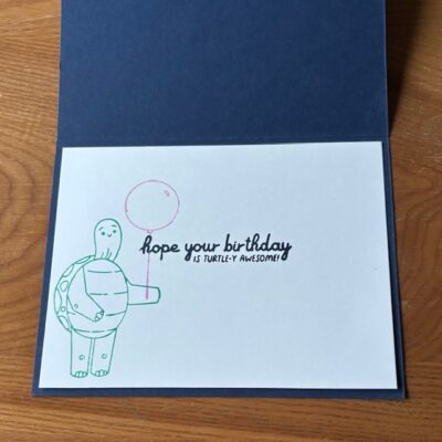On the inside of the card, I used the stamp set “Turtle-y Awesome”.