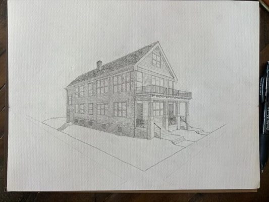 Jack invited us to visit him in Milwaukee so we could see his apartment. Jack drew this image of his college housing. Can you tell that his major is architecture?