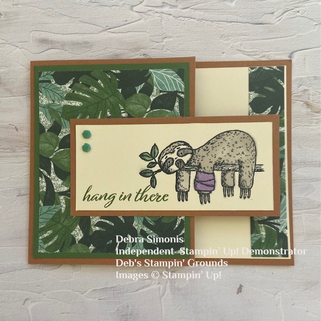 Stampin Up Back on Your Feet fun fold get well card sloth hang in there leg or arm cast – Debra Simonis Stampinup