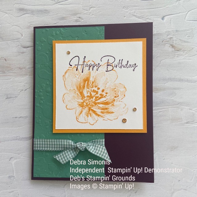 Stampin Up Flowing Flowers Splatters & Stripes Embossing Folders Happy Birthday Card – Debra SImonis Stampinup