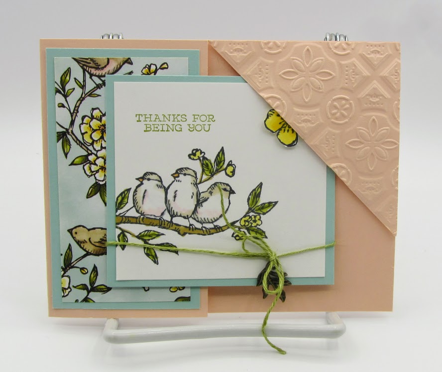 Stampin Up Free as a Bird stamp set – Bird Ballad Designer Series Paper -thank you card – Fancy Fold card – Deb Simonis Stampinup