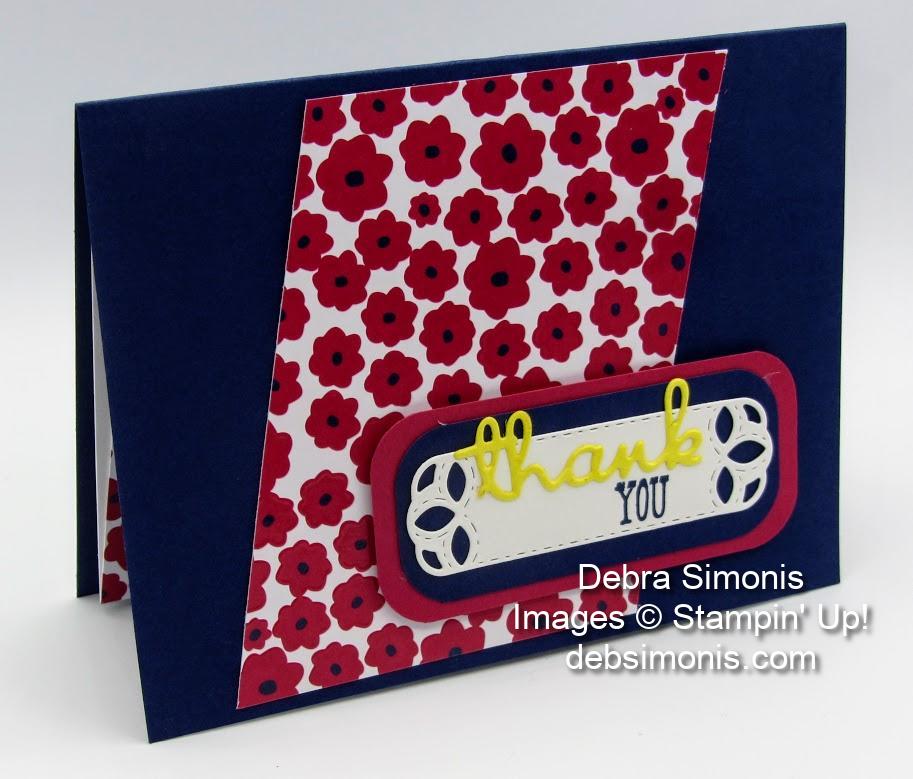 Stampin Up Happiness Blooms Memories & More Cards Stitched Labels Dies Word Wishes Dies thank you card – Debra Simonis Stampinup