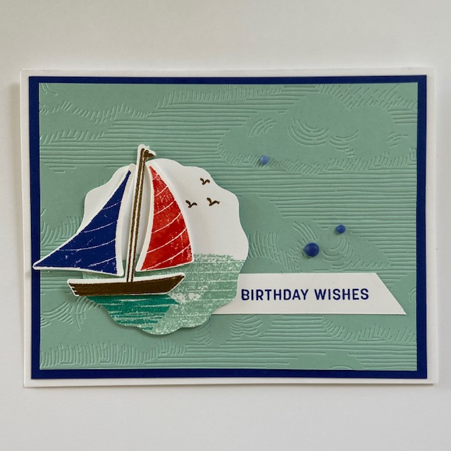 Stampin Up Let’s Set Sail Into the Clouds Embossing Folder Decorative Circle Punch masculine birthday card sailing enthusiast – Debra SImonis Stampinup