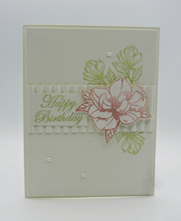 Stampin Up Magnolia Blooms Very Versailles Corrugated Embossing Folder happy birthday card – Debra Simonis Stampinup