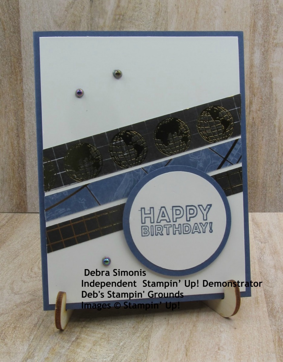 Stampin Up Many Mates World of Good designer series paper – masculine themed birthday card – Debra Simonis Stampinup