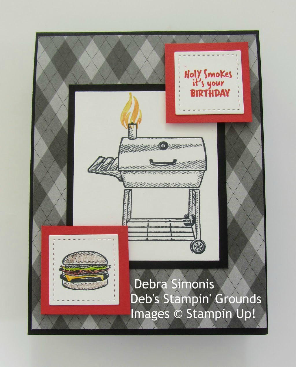 Stampin Up Outdoor Barbeque Country Club Designer Series Paper barbeque grill masculine card – Debra Simonis Stampinup