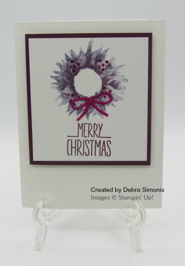 Stampin up Painted Harvest Purple Christmas Wreath card idea – Debra Simonis stampinup