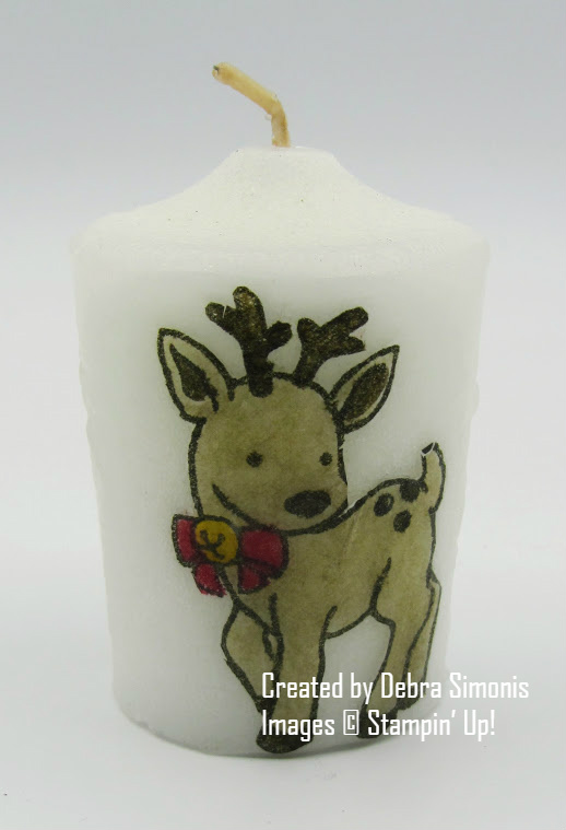 Stampin Up Seasonal Chums stamping on candles – Debra Simonis Stampinup