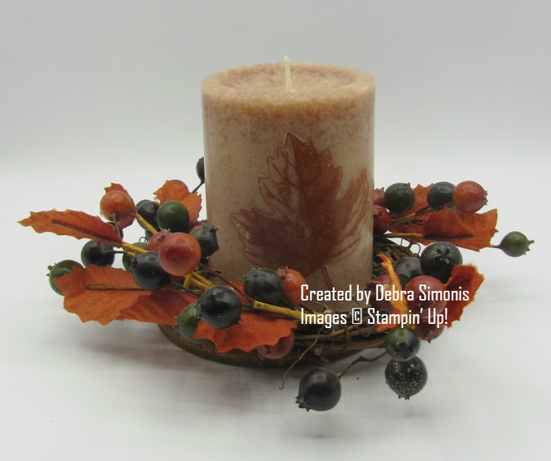 Stampin Up Vintage Leaves stamping on candles home decor project – Debra Simonis Stampinup