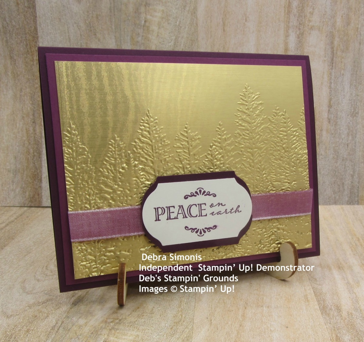 Stampin Up Wrapped in Christmas Evergreen Forest Embossing Folder Timeless Label Punch Christmas Card – Debra Simonis Stampinup