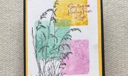 It’s been a long time since I’ve done this Acrylic Block Background technique; easy peasy! Color block with ink pad or Stampin’ Write Marker, spritz with water and stamp block onto cardstock. Stamp Set – Prairie GrassInk – Pool Party, Fresh Freesia, Daffodil Delight, Berry Burst, Momento BlackCardstock – Basic Black, Basic White, Daffodil DelightAccessories – Multipurpose Liquid Glue I brought back Acrylic Blocks when I returned from Florida in July. But I don’t have…